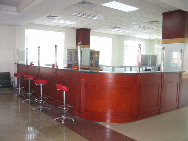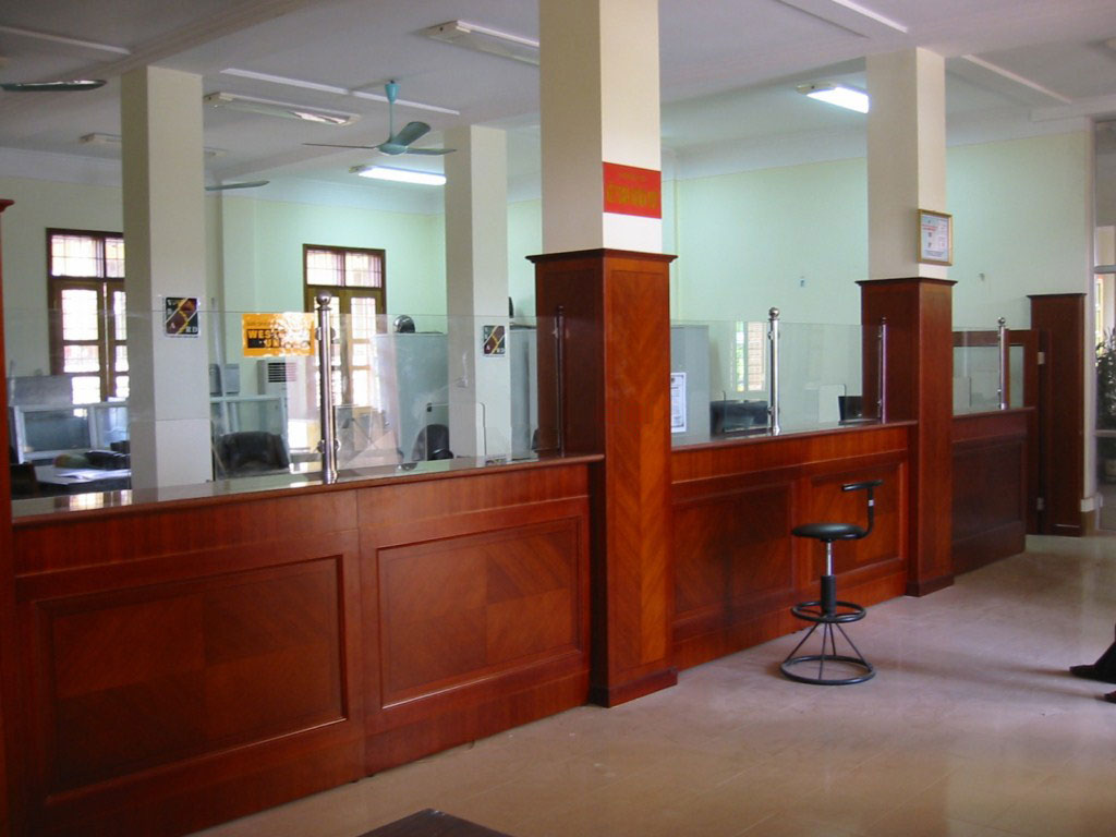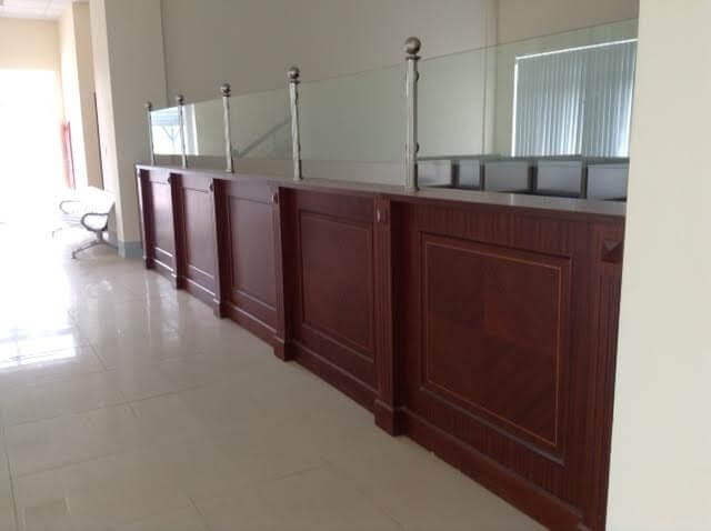 Chất liệu: Bàn quầy làm bằng gỗ Verneer sồi, bề mặt sơn PU 5 lớp, màu sắc lựa chọn