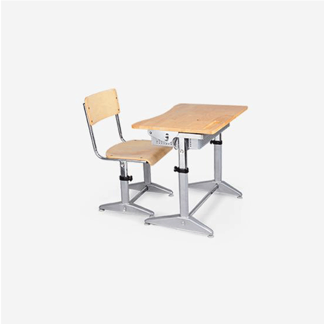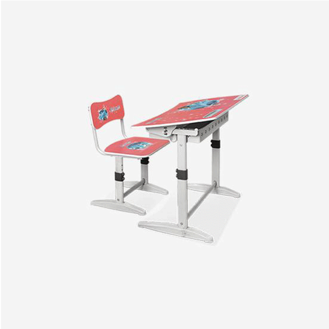 Bàn học sinh cao cấp, mặt bàn được làm từ gỗ tự nhiên, có thiết kế hiện đại theo mẫu bàn học sinh Hàn Quốc. Khung bằng thép Ovan 30×50 sơn bột tĩnh điện. Ống nâng hạ bằng thép Ovan 25×50 mạ Ni-Cr. Ghế có mặt gỗ MFC định hình.