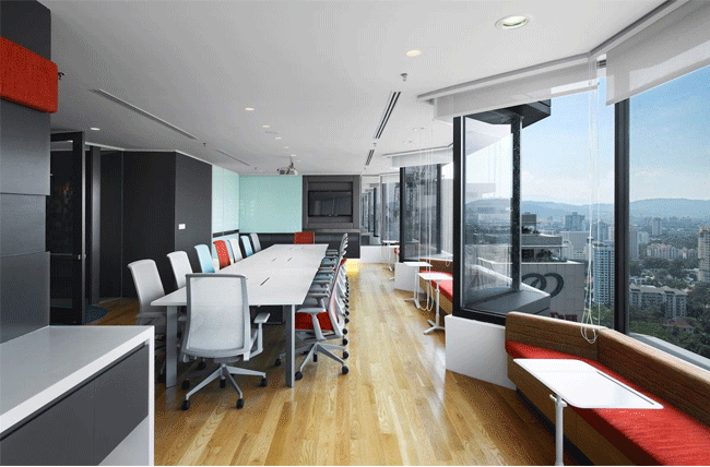 Một văn phòng làm việc có sử dụng những màu sắc nổi bật sẽ giúp không gian trở nên ấn tượng hơn hẳn.Những công ty sáng tạo thường hay sử dụng màu sắc nổi bật nhằm mục đích kích thích tính năng động và sáng tạo cho tập thể. Tuy nhiên, bạn cũng cần lưu ý một chú về việc phối hợp các tông màu một chút. Vì chúng cần phải phải có độ hài hòa nhất định để tránh cảm giác quá nhiều năng lượng dẫn tới việc gây căng thẳng.