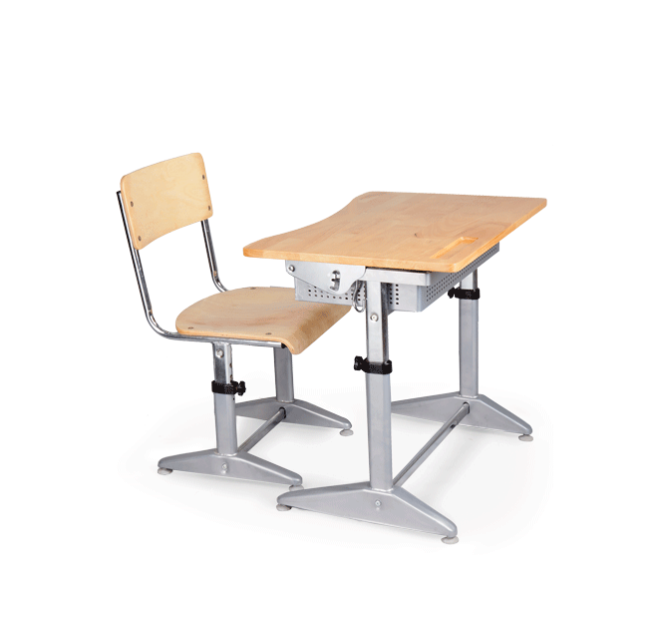 Bộ bàn ghế học sinh BHS-14-04CS Khung bàn bằng thép ovan 30x55, sơn bột tĩnh điện. Ống nâng hạ bằng thép ovan 25x50 mạ Ni- Cr Mặt bàn bằng gỗ tự nhiên (gỗ cao su) Mặt ghế bằng gỗ dán ép định hình