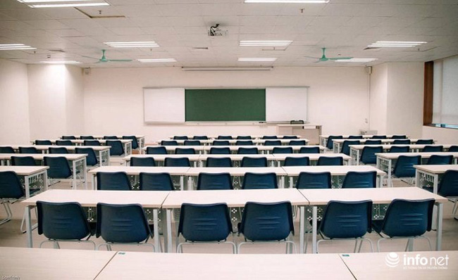 Sinh viên hớn hở trong phòng học của giảng đường hiện đại nhất