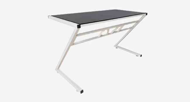 Bàn BLV-06-00 khung bàn kết cấu lắp ráp. Chân thép hộp hàn hình chữ Z, thiết kế thanh giằng đỡ mặt bàn và kết nối khung chân, sơn bột tĩnh điện màu đen hoặc trắng ngà. Chân bàn có nút chân tăng chỉnh. Mặt bàn mặt gỗ MFC dày 18mm, thiết kế âm trong khung bàn.