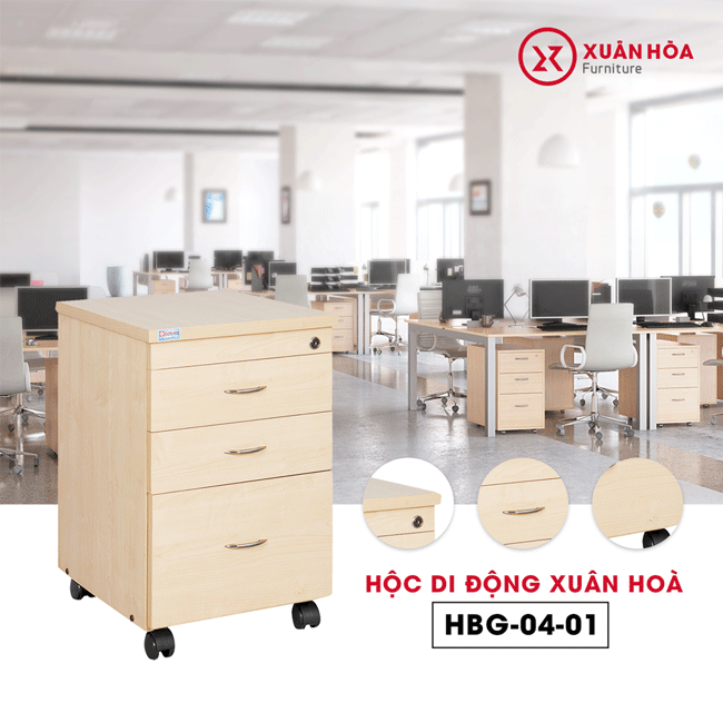 Ngoài chức năng giúp mở rộng khả năng lưu trữ tài liệu ở văn phòng, hộc di động (HBG-04-01) của Xuân Hoà còn có thể dùng trong nhiều không gian văn phòng khác nhau cũng như kết hợp với các sản phẩm nội thất sẵn có trong văn phòng của bạn.