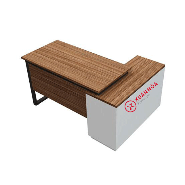 Mặt bàn chính và mặt bàn phụ có tone màu tối liền khối với hộc bàn phụ màu trắng tạo cảm giác chắc chắn, tin tưởng.