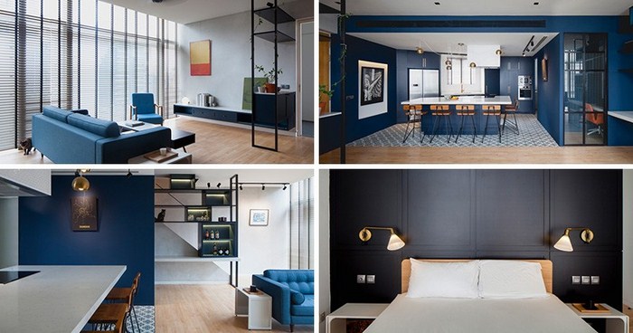 Theo nhà thiết kế, sự kết nối mang tính hiện đại và hài hước, nó đem đến tông màu xanh thẳm của nước, được cân bằng với những màu sắc trung tính và ánh vàng ấm áp tràn đầy năng lượng. Bạn cũng có thể tạo điểm nhấn cho không gian bằng cách nhấn nhá bất cứ gam màu nào phía trên vào căn phòng, chẳng hạn như sơn lại màu xanh sáng cho chiếc bàn.