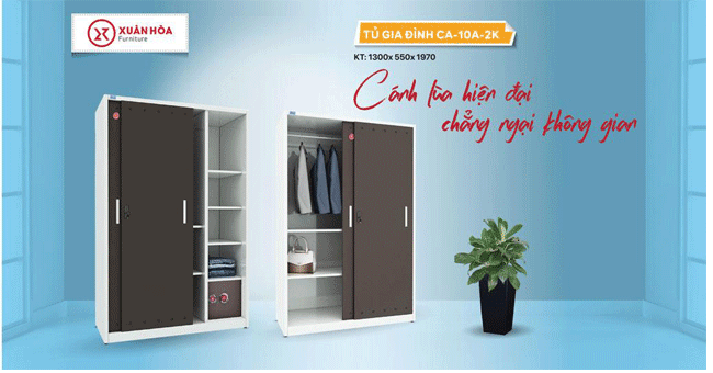 Đối với phòng ngủ thì chiếc giường và tủ quần áo là hai món nội thất không thể thiếu, tuy nhiên cả hai đều rất đồ sộ. Nếu căn phòng chỉ rộng khoảng 10-15m2 thì chủ nhân ắt hẳn phải rất đau đầu khi vừa muốn kê một chiếc tủ đựng được nhiều quần áo lại vừa muốn nó không chiếm quá nhiều diện tích. Nhưng, đừng quá lo lắng, bởi Công ty Xuân Hòa thấu hiểu vấn đề này và đã dày công nghiên cứu để cho ra mắt mẫu sản phẩm tủ cánh lùa gia đình CA-10A-2K giúp tiết kiệm không gian tối đa.