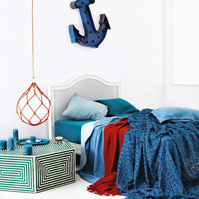 Nếu cam đào là gam màu dành cho phòng ngủ con gái thì không gian của con trai sẽ thích hợp nhất với màu xanh lam này.