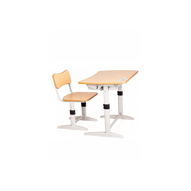 Bộ bàn học sinh ghế rời. Khung bàn sử dụng ống thép sơn bột tĩnh điện. Mặt bàn và ghế làm bằng gỗ cao su tự nhiên.